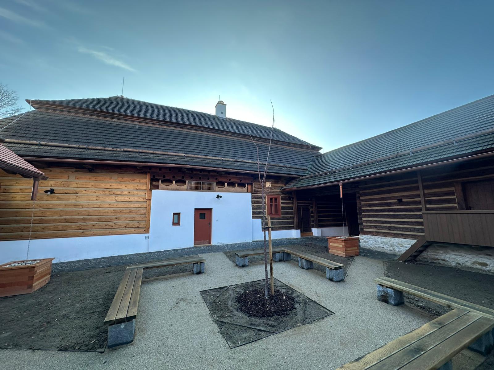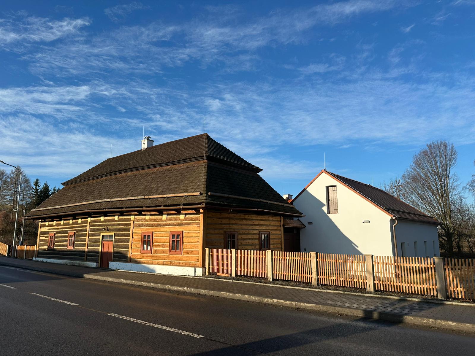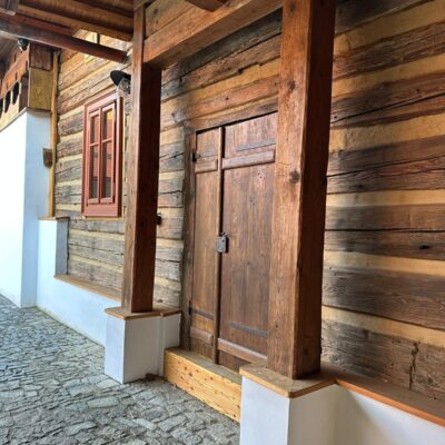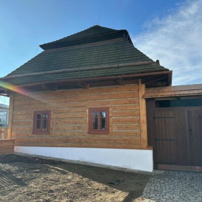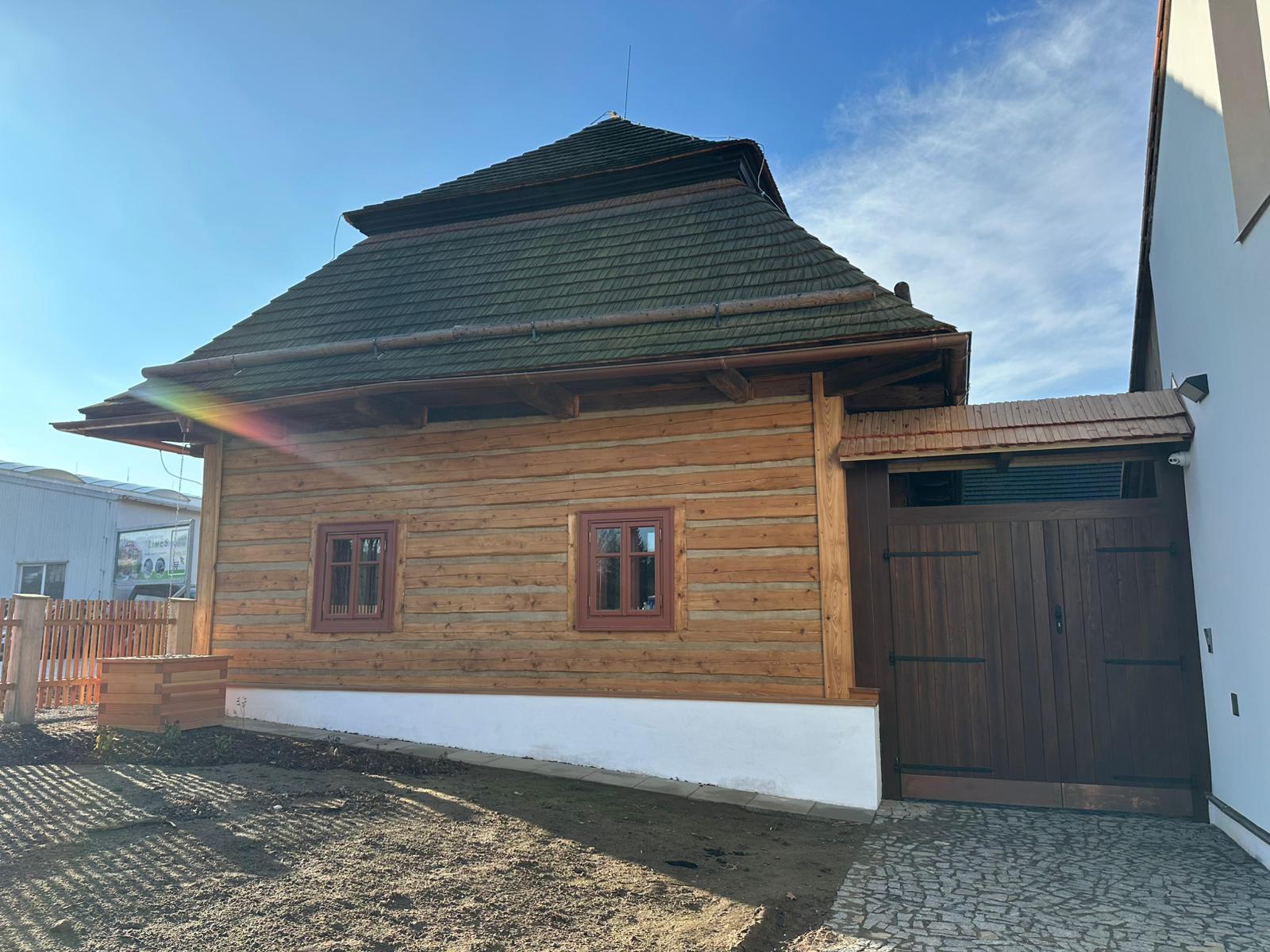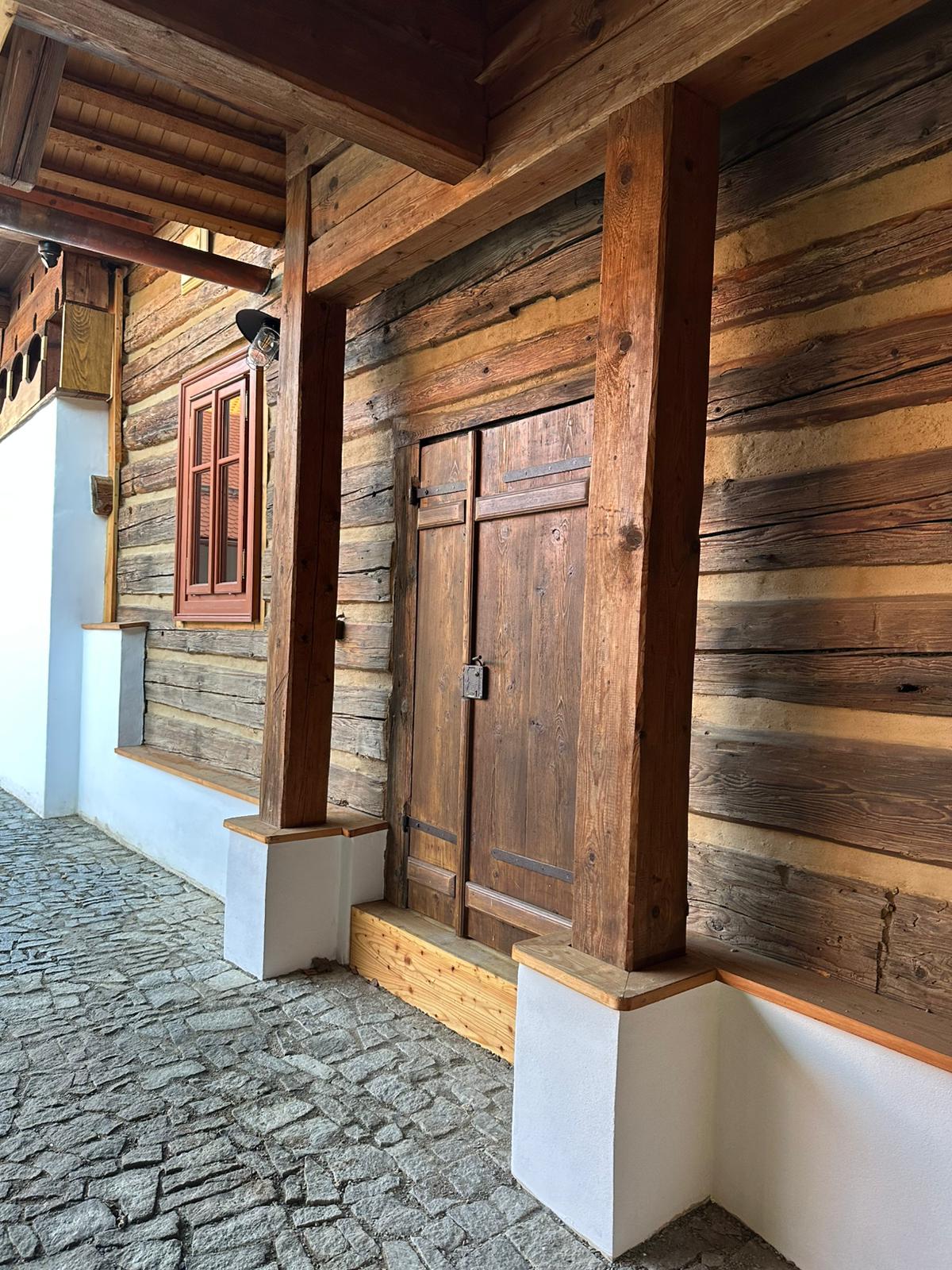 - Design v souladu s tradicí: Okna i dveře byly navrženy tak, aby citlivě doplňovaly technicky náročnou roubenou část objektu.